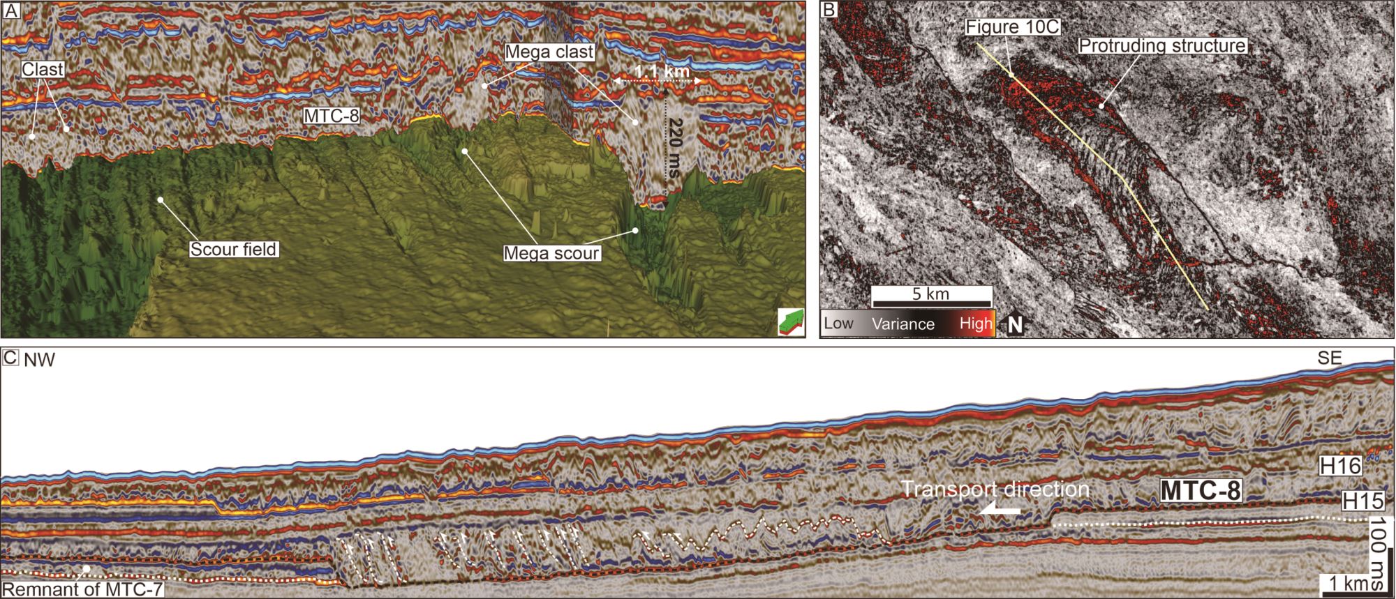 文章引用及文章链接:Nan W*, Christopher J, David H, et al. Interactions between buried mass-transport complexes and subsequent slope failures on a passive margin [J]. GSA Bulletin (2026).